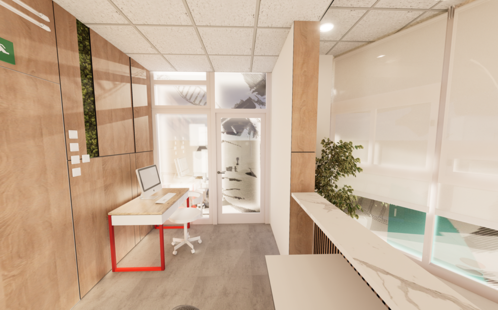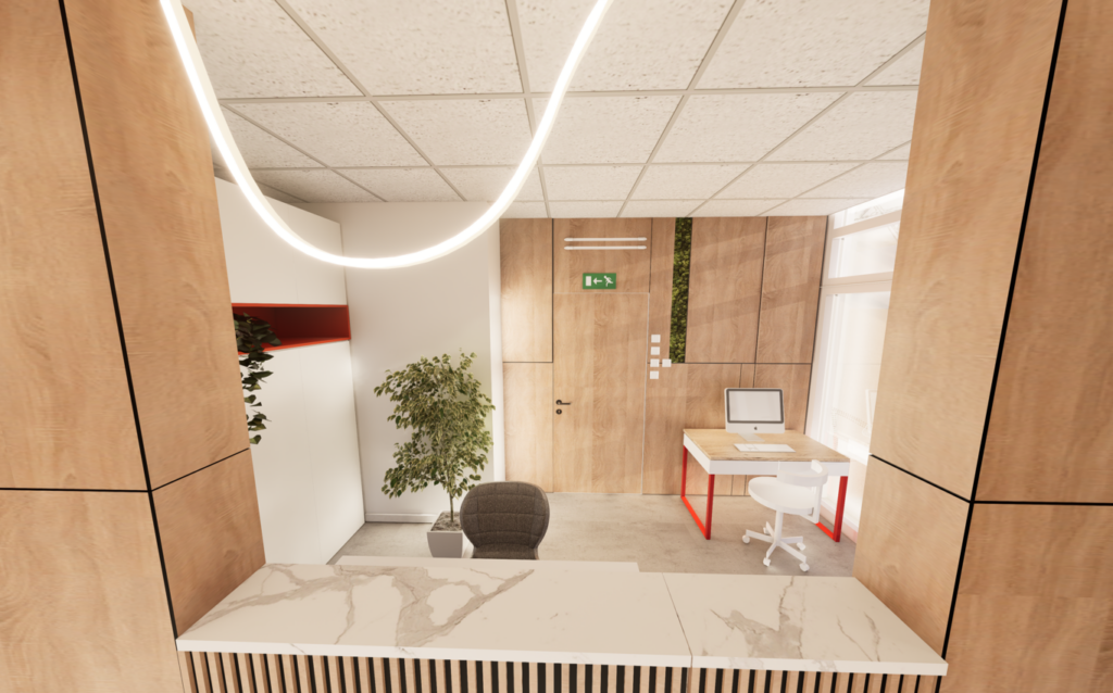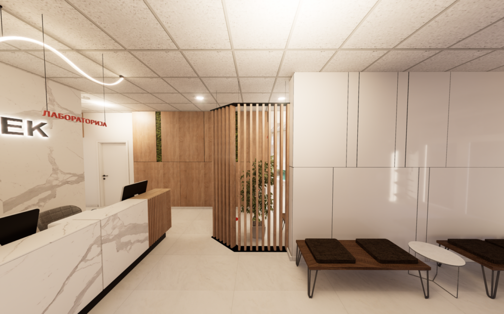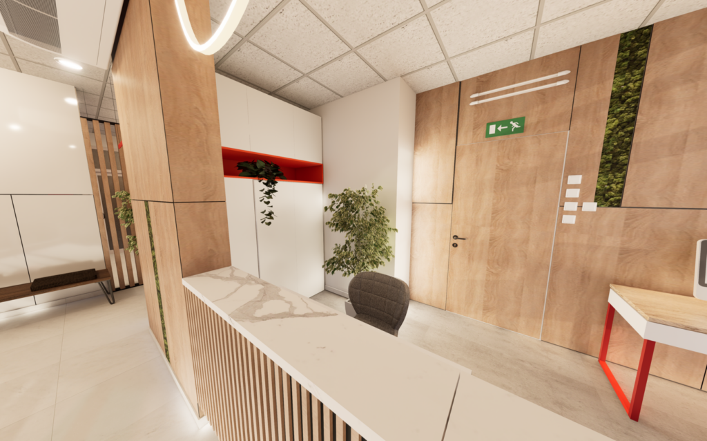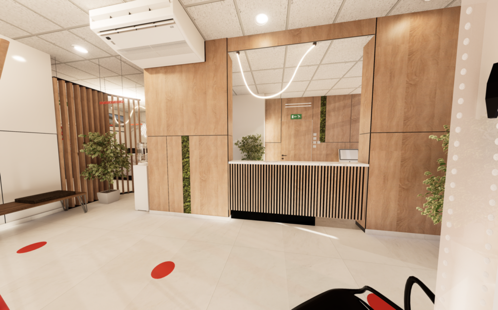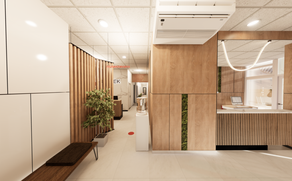Adaptation and interior design of a new entrance area, Biotek Polyclinic, 3D renderings