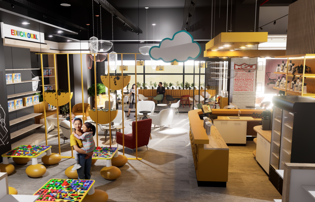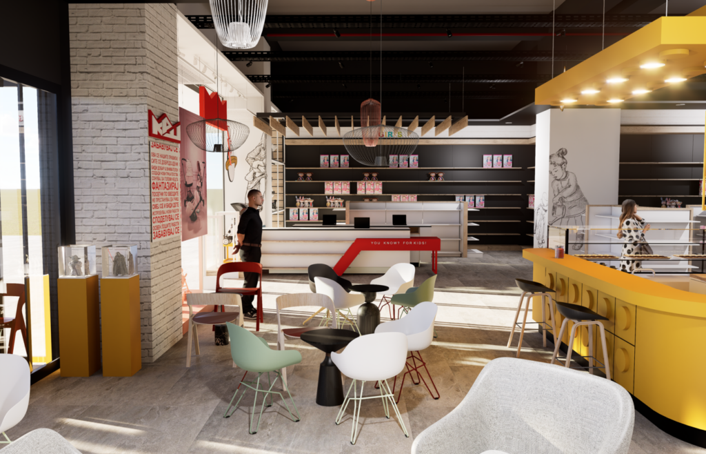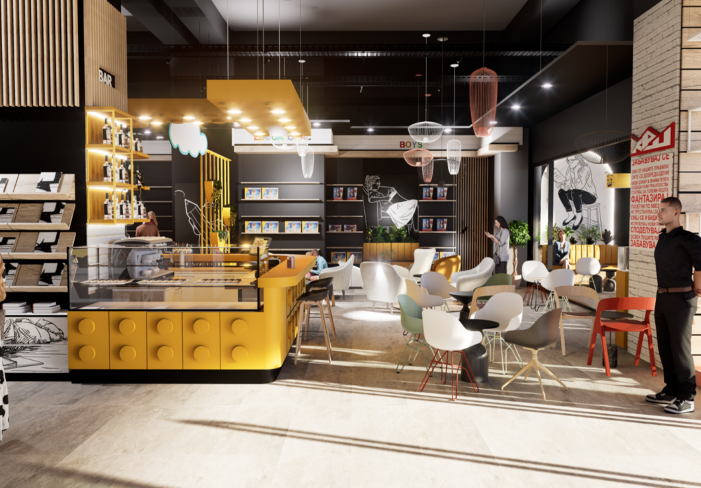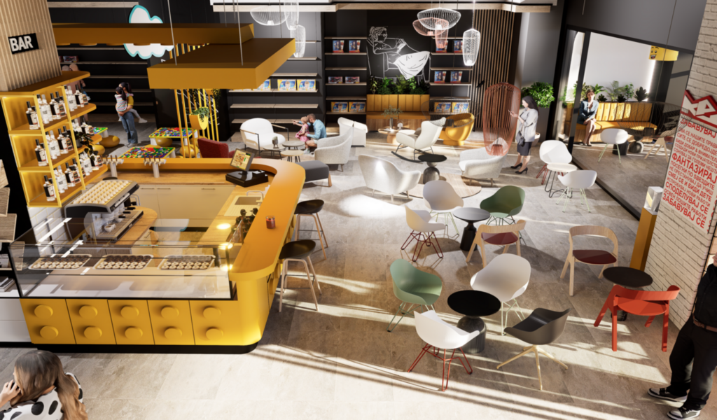 Interior design of Café Bar – Krsh, East Gate Mall, 3D renderings